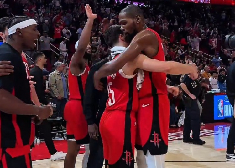 世界杯决赛记录-小伙子你是功臣!杜兰特申京赛后拍谢泼德的脑袋致意 范乔丹转发